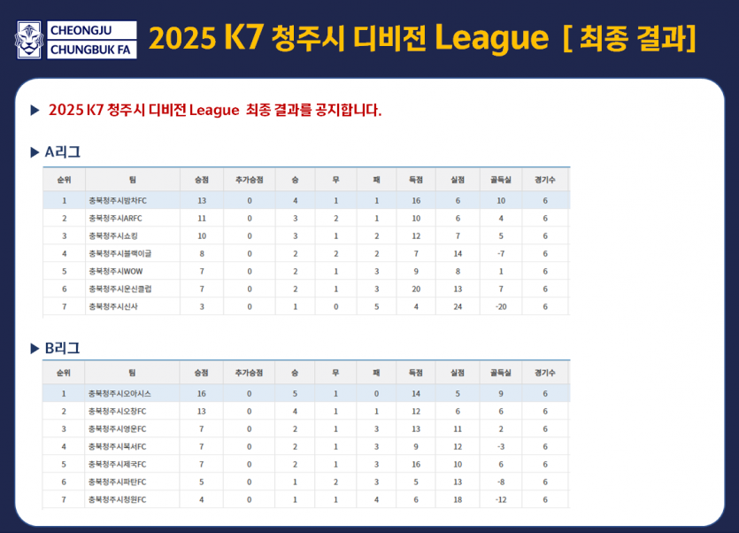 2025 K7 청주시 디비전 리그 「최종결과」 페이지 정보 작성자 최고관리자 댓글 0건 조회 15회 작성일 25-11-26 16:23 목록 답변 본문 다음글2023 K7 청주시 디비전 리그 「최종결과」 23.09.06 댓글 0 댓글목록 등록된 댓글이 없습니다.